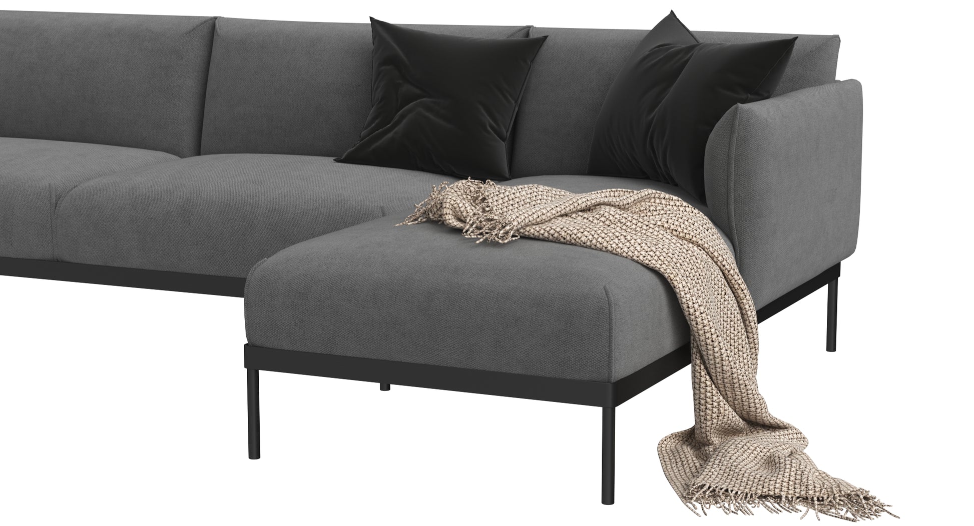 High-quality 3d model of IKEA Applaryd Sofa with Chaise Longue which is designed for living room, office, or other areas.
