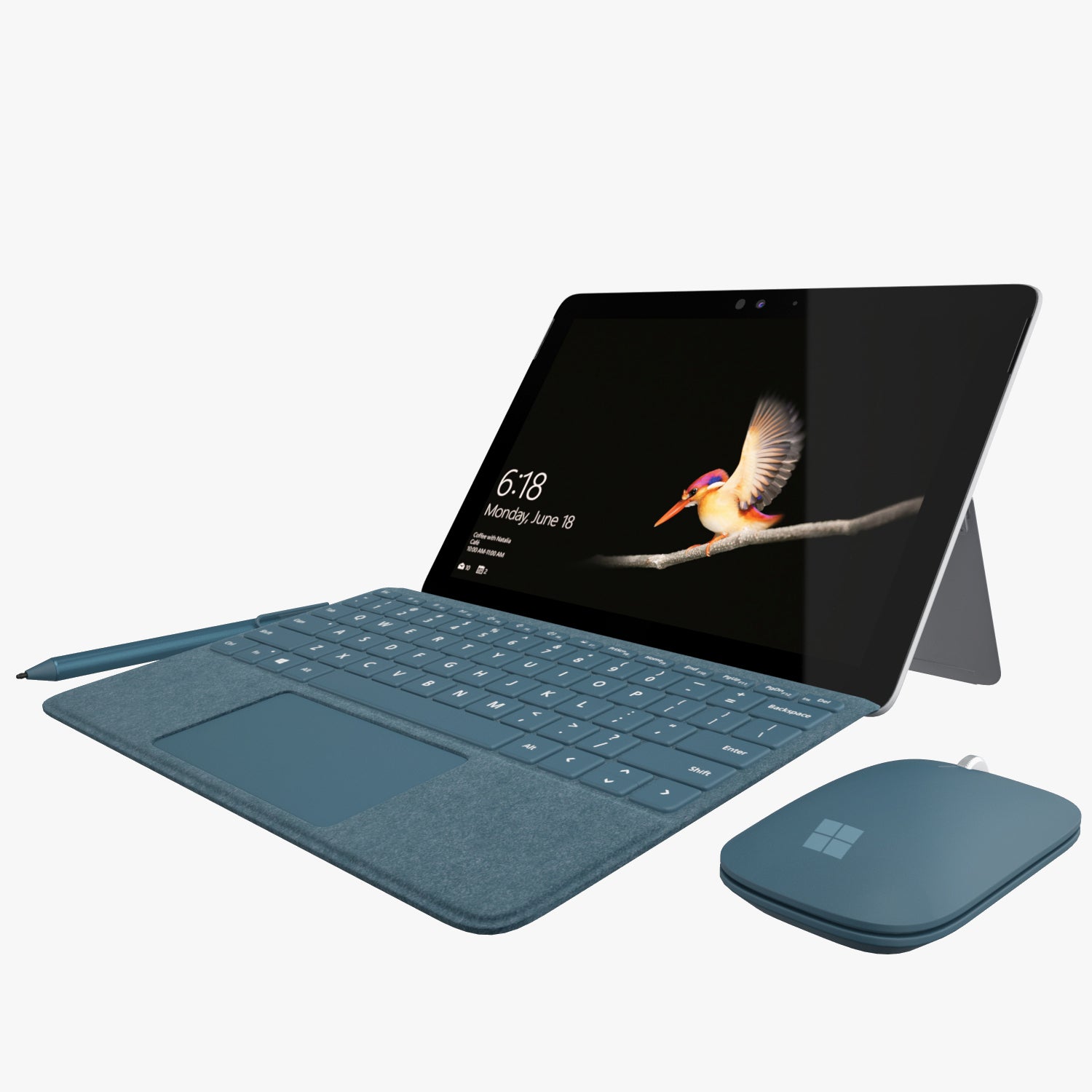 The 3D model of Microsoft Surface Go with Keyboard & Mouse and Pen All Colors was created in 3D Studio Max 2010 software. It has detailed geometry for small details such as buttons on the keyboard and mouse. The model is also prepared for V-Ray renderer and includes all necessary textures.