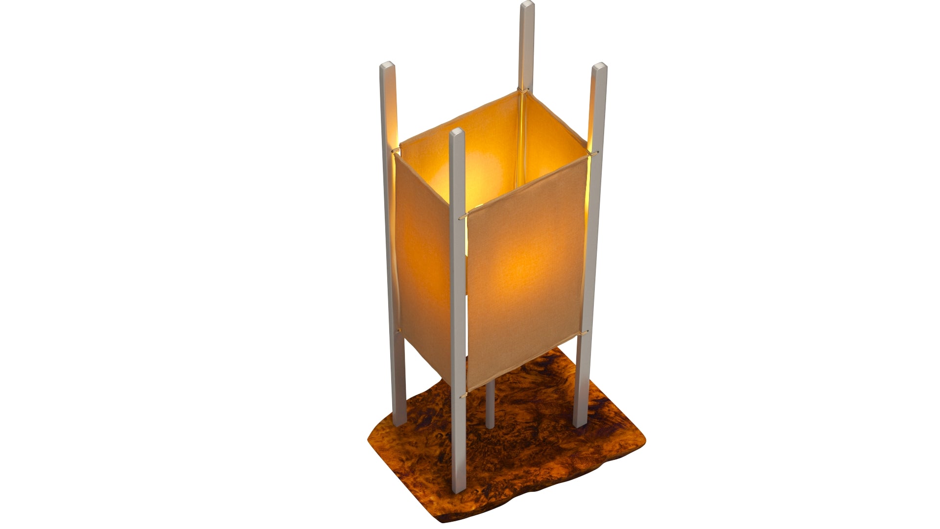Series Three Light by Christopher Baker is a 3D Model that has advanced rendering that will detailed, and lifelike images for designers to show any of their rendering projects. The model was originally modeled in 3ds Max 2016 and rendered with V-Ray. There's no need for you to postprocessing when renders. Lamp Dimension is W222 x D248 x H533 mm. The wood base is made from Red Mallee Burl sourced from Australia. The structure of light is composed of Aluminum and Japanese flat Henpei silk thread. The lamp diffusion is made of Mitsumata handmade paper, which is 100% crafted by Shigeru Ozaki in Kochi prefecture, Japan. Paper has different pin prick patterns that shimmer when exposed to light.